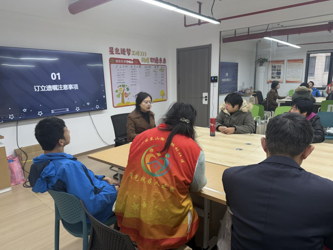 2025年11月21日,公益律师团的王依冉律师为星光残疾人之家开展了《残障人群订立遗嘱及遗赠扶养协议注意事项》的主题讲座,现场数十位残疾人及其家属和工作人员参与讲座。