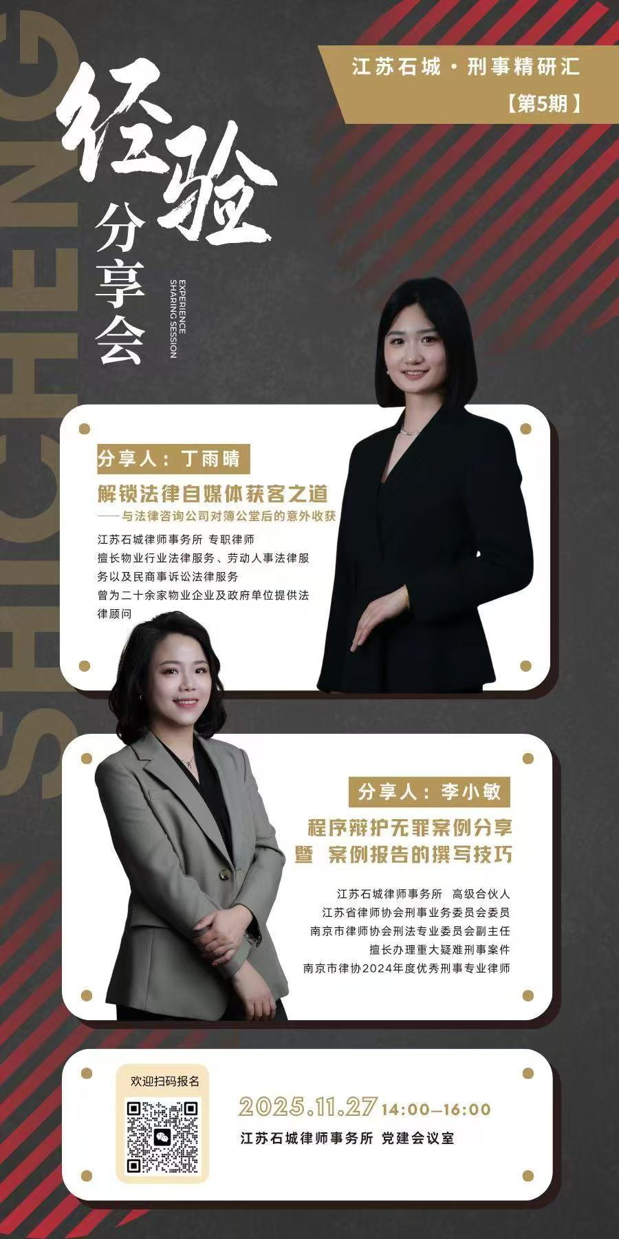 为凝聚专业智慧,拓宽执业思路,2025年11月27日下午,江苏石城律师事务所刑事委员会举办了2025年度第五期刑事精研汇。所内同仁齐聚一堂,共同聆听一场聚焦实务、干货满满的专业分享,在思想碰撞中汲取执业养分。