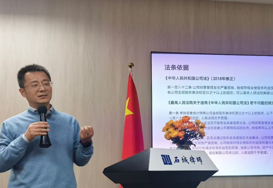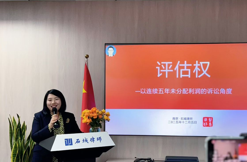 江苏石城律师事务所公司专业委员会“案例分享赋新能、学思践悟共成长”实战研讨会于2025年12月26日下午成功举办。本次研讨会聚焦股东与公司治理中的核心矛盾与实务难题,邀请徐贤彪、许晶晶、刘晓华三位律师担任主讲人,分别围绕“股东评估权行使与公司利润分配困境”、“股东失联情境下的公司强制解散路径”以及“股东侵害公司利益纠纷的诉讼应对”三大议题展开深度解析。